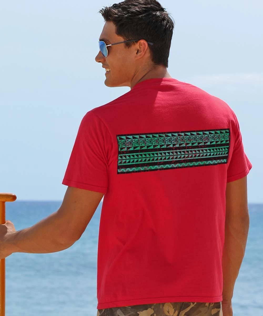 Alii Tapa Band – Candy Apple Red Dyed Short Sleeve Crewneck T-Shirt