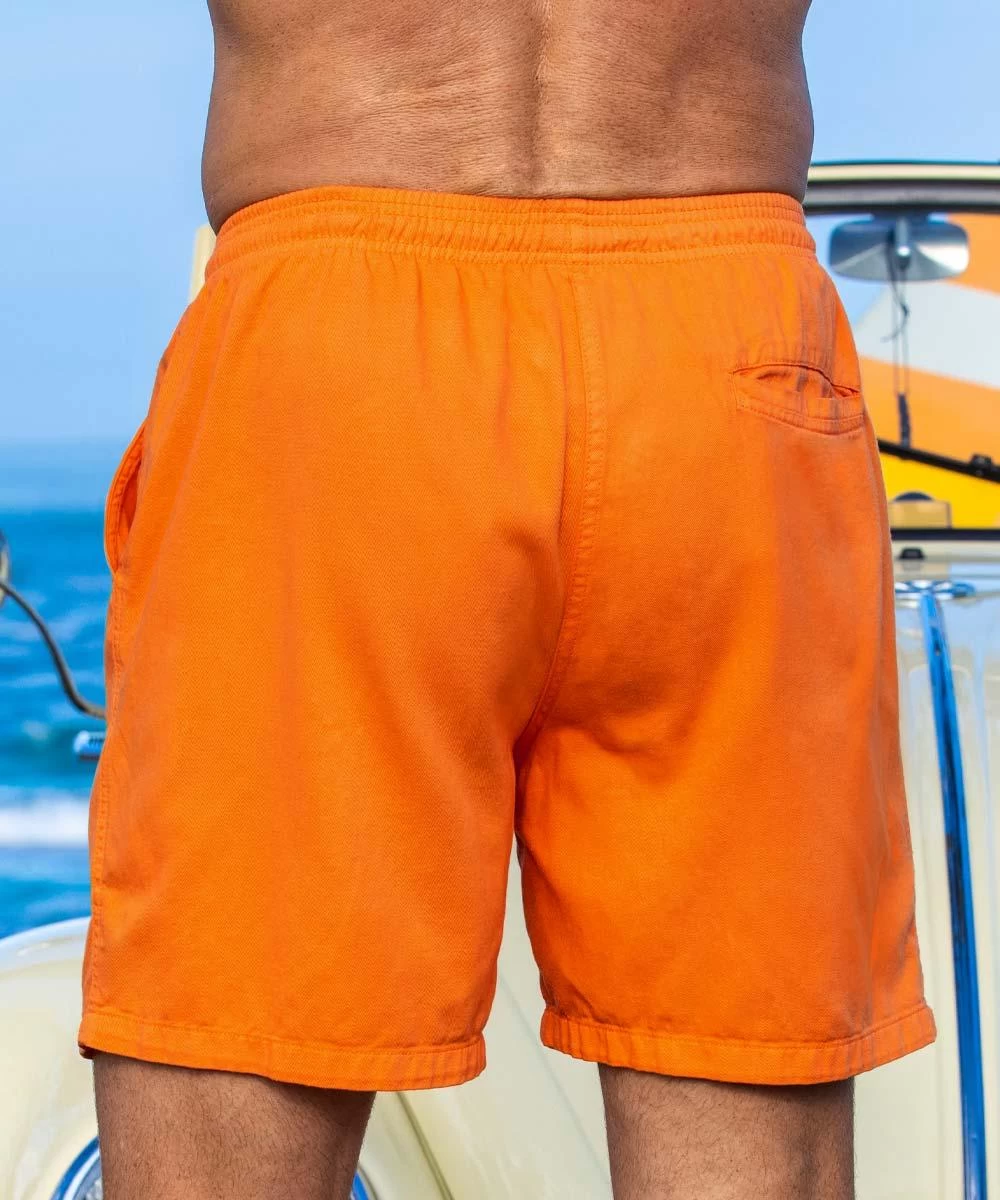 Relaxation and rejuvenation is built into each pair of these shorts thanks to a relaxed fit that opens up a world of comfort and possibility. With a name like Crazy Shorts, you know they are as playful as they are special, and our newest style dyed with real apricots to create a stunning yellow-orange hue is proof of that. Made from 100% cotton that’s woven into a heavyweight twill gives them an easy-going feel and enduring structure. On the go, the stretch elastic waist with a continuous reinforced drawstring provides comfort and flexibility. A mix of deep and welt pockets lets you keep your stuff safe and secure.