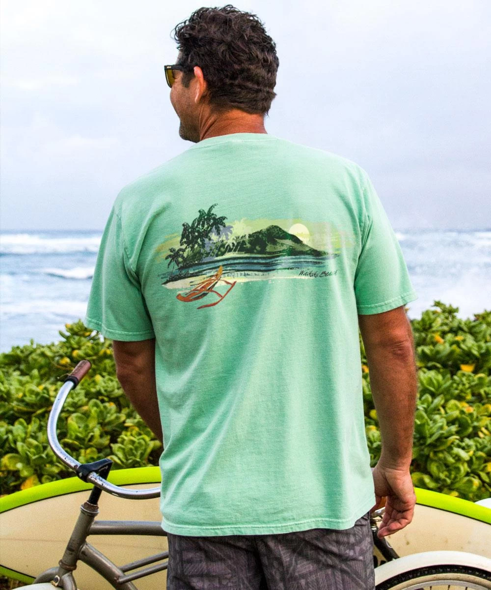 A flashback to a time when the first humans laid eyes on Diamond Head. Pristine and powerful, this image conveys why early Hawaiians believed goddesses lived on the volcano and why it’s still a historic landmark. Made using our exclusive specialty dyeing process that uses real key limes and featuring 100% combed ring-spun cotton, this t-shirt has 50+ SPF protection to keep you feeling cool, calm and protected all year long. We only use environmentally friendly water-based inks that penetrate the material’s fiber resulting in more vibrant colors, softer feel and artwork that doesn’t crack or peel. Plus, it is proudly printed in the United States for quality you can see and designs that stand the test of time.